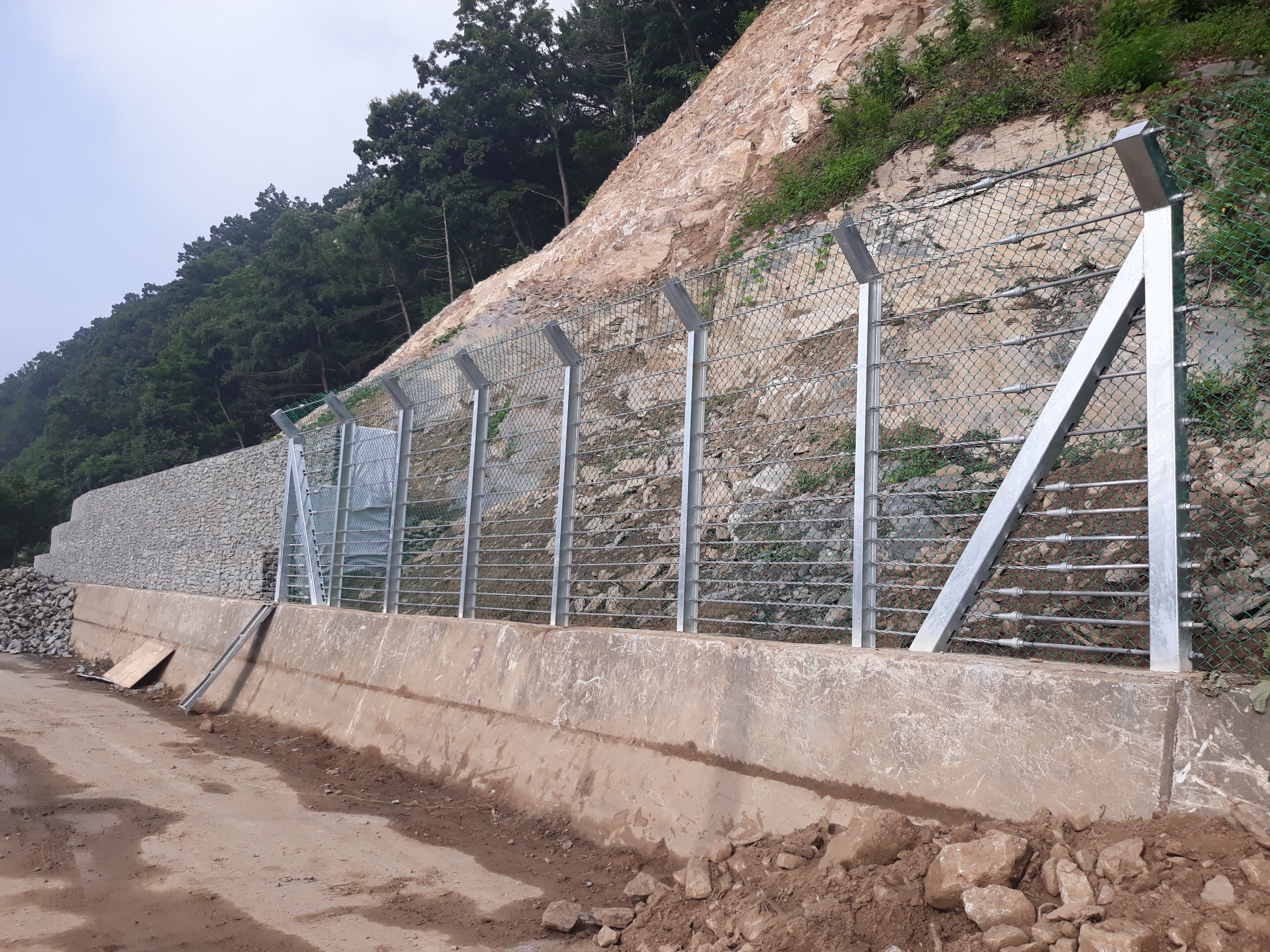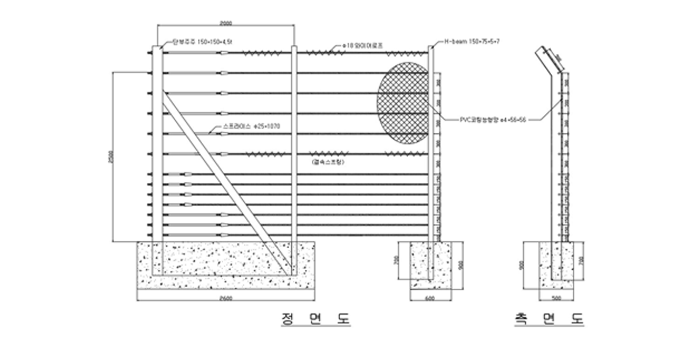 • 일반적으로 하부 와이어로프에 낙석이 충돌할 가능성이 높으므로, 하부 와이어로프의 간격을 조밀하게 설치하는 경우가 있습니다.