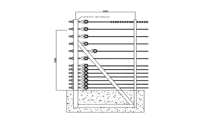 • 일반적으로 하부 와이어로프에 낙석이 충돌할 가능성이 높으므로, 하부 와이어로프의 간격을 조밀하게 설치하는 경우가 있습니다.