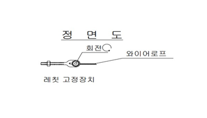 • 이때 와이어로프의 단부나 중간에 래칫(스프링, 댐퍼 등)를 설치하여 충격 흡수 기능을 부여합니다.
