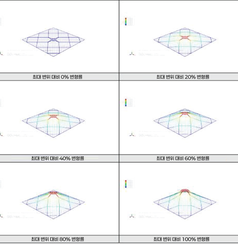 - 신청제품은 동일한 에너지 조건(29.23kj)에서 약 36% 작은 변위를 보여, 평균 156% 수준의 하중 저항력을 확보함.